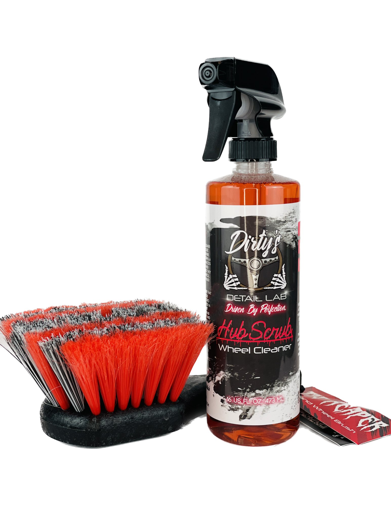 Don’t go into the battle of cleaning your tires and wheels without the proper weapon! With one use, The Reaper tire and wheel brush will quickly prove its worth in your detailing arsenal. The Reaper’s professional grade soft polypropylene bristles go deep into hard to reach areas on even the most complex wheel designs to remove stubborn brake dust and dirt build up. As a tool that will likely spend a lot of time on the ground and around harsher than usual chemicals and grime, this brush is not only durable but highly resistant to acids, heat, chemicals and solvents. The handle is constructed of extremely durable thermoplastic and follows the natural contours of your hand in order to minimize strain and discomfort over long periods of use. This brush is also great for use in other hard to clean areas such as bumpers, trim, grilles, exhaust tips, and running boards. Kill grime and save time with Dirty’s Reaper tire and wheel brush!
