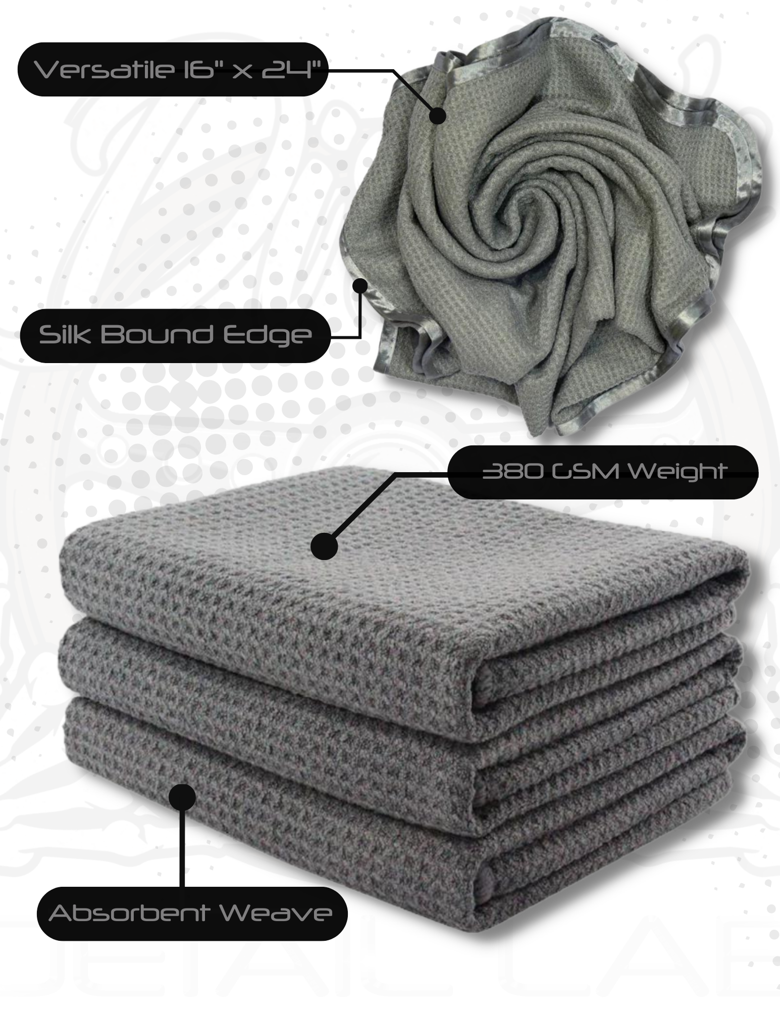 Think all microfiber towels are created equal? Think again! The Storm chaser microfiber towel is one of the most versatile towels out there. The waffle weave detailing towel is adept for drying, polishing, glass cleaning and quick detailing. Our honeycomb waffle weave construction provides 30% more absorption than your standard microfiber towel, while a special silk binding ensures scratch-free usage. Its cross hatched pattern of high and low spots (like a waffle) allows for superior absorption and reduces surface friction allowing it to easily glide over surfaces leaving a streak-free and lint-free shine every time.
