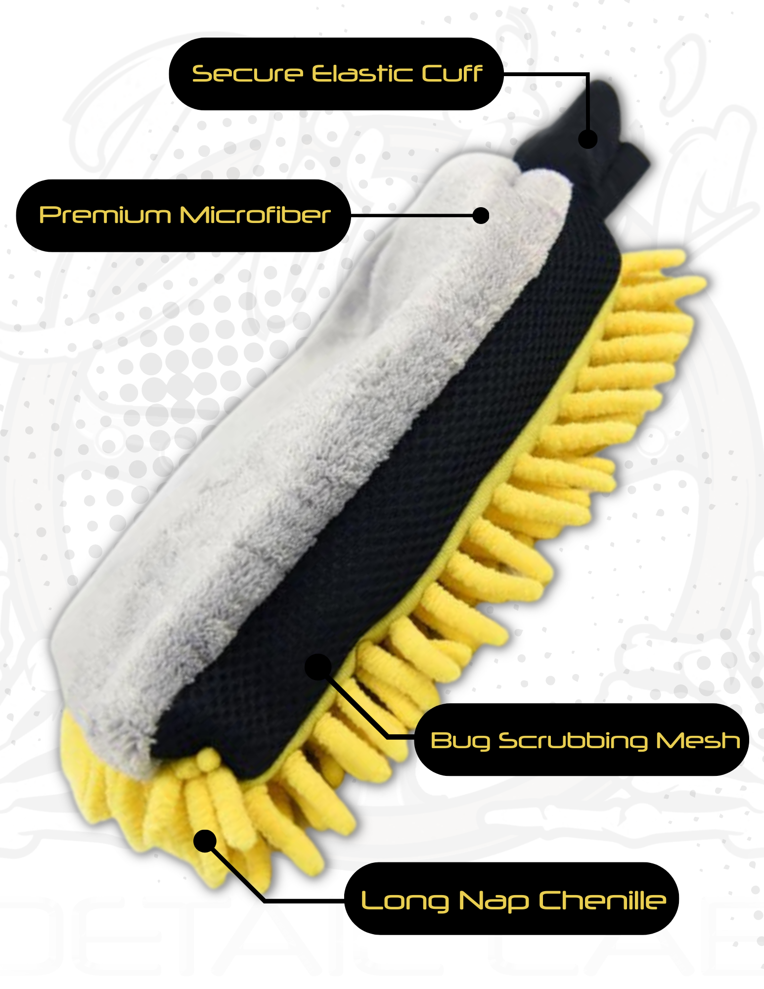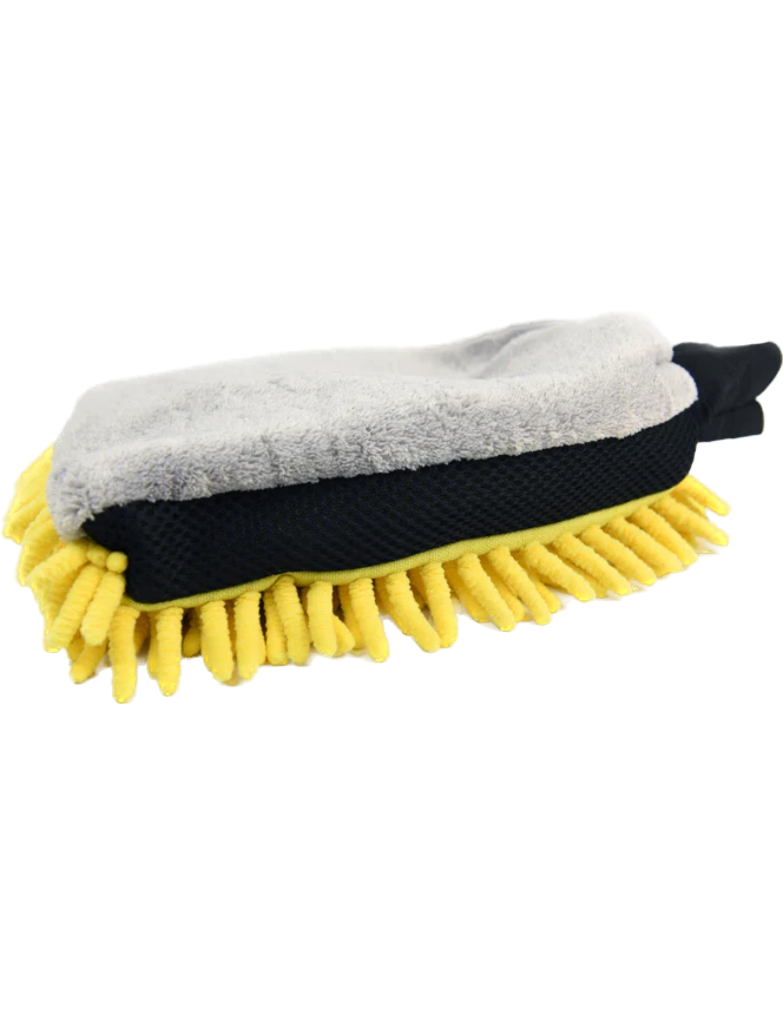 Gone are the days of washing your ride with mildew-ridden sponges and paint scratching brushes. You love your vehicle and it’s time to start washing it like you do! The Triple Threat wash mitt is the answer to all of your soap spreading needs. This 3 in 1 mitt provides a safer and more effective method of washing your car. The long microfiber tassel side absorbs soap and shampoo that evenly disperses it as you clean, while the flat microfiber side gently scrubs away stuck on dirt and grime. Got bugs? We also have you covered in that department with a nylon mesh integrated into both sides of the mitt to remove even the most stubborn splatters. This mitt is even plastic lined to keep your hand as dry as possible while in use. Level up your wash game with the Triple Threat.